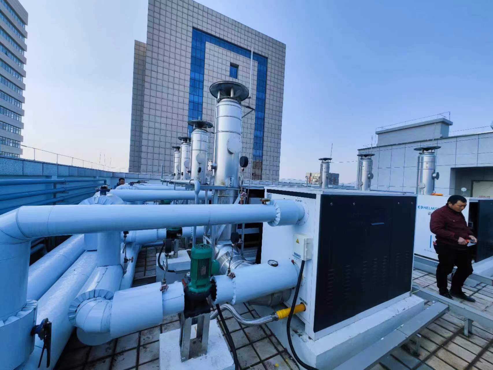 项目位于南京,是国家三甲医院,年门急诊量达到100万人次。此次我公司供应的冷凝炉是为医院扩建项目提供采暖热水。由于园区内没有专门的锅炉房,应院方要求我们提供了户外型锅炉,安装于医院附属楼的顶层。