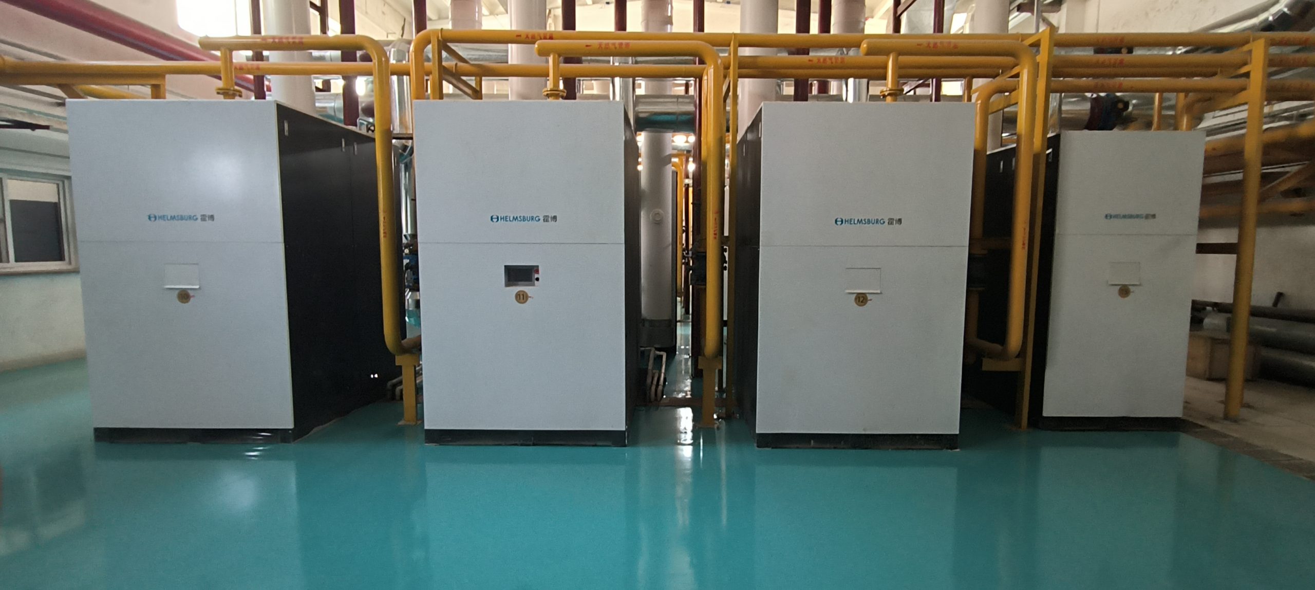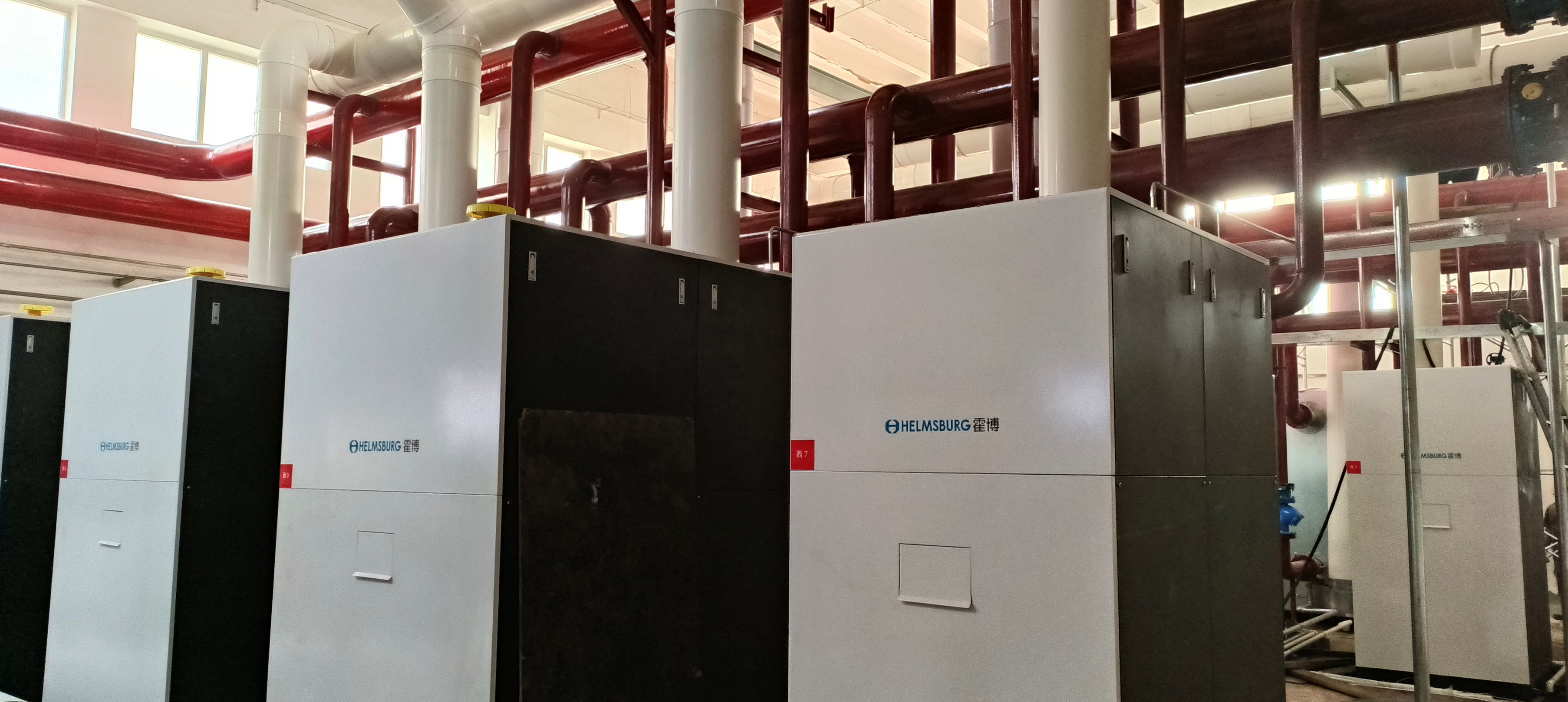 拆除原有钢制锅炉后安装了14台2800KW霍博不锈钢火管冷凝锅炉。